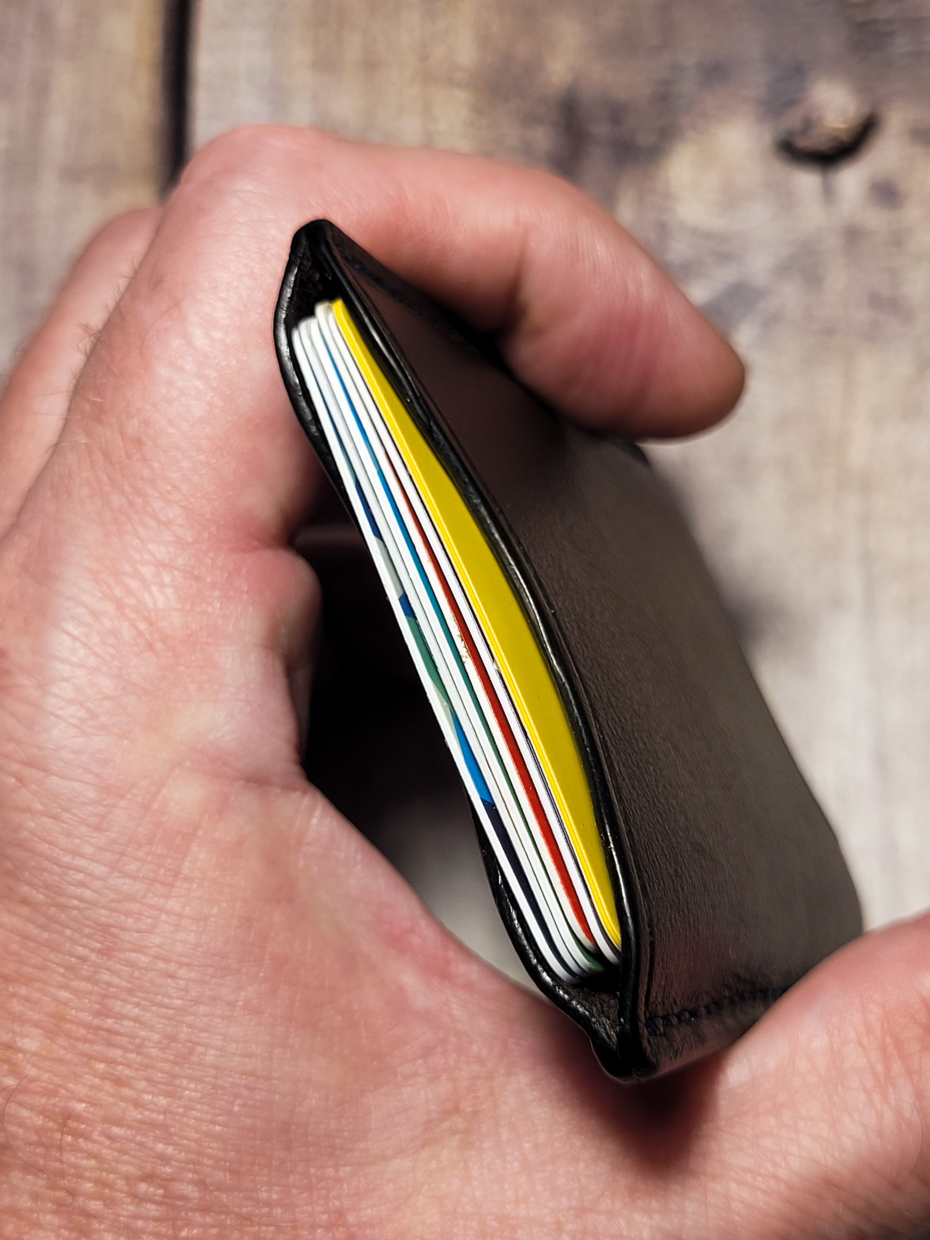 - Кардхолдер может использоваться и как мини кошелек, вместе с картами в кармашек можно поместить несколько сложенных купюр.